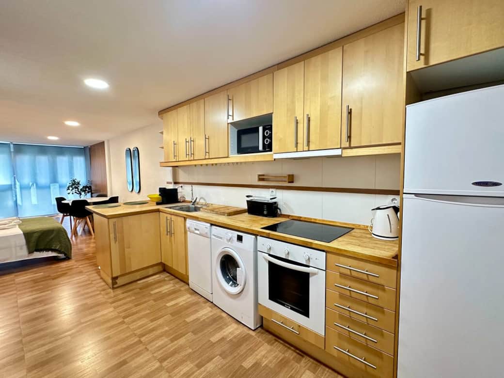 El espacio ha sido pensado para que te sientas como en casa: loft open space con cama doble de 135 cm recién estrenada, cocina totalmente equipada (incluye lavavajillas, microondas, cafetera Nespresso Virtuo y tostadora), aire acondicionado, wifi rápido, lavadora y TV para tus momentos de relax. Perfecto tanto para escapadas como para estancias de teletrabajo.